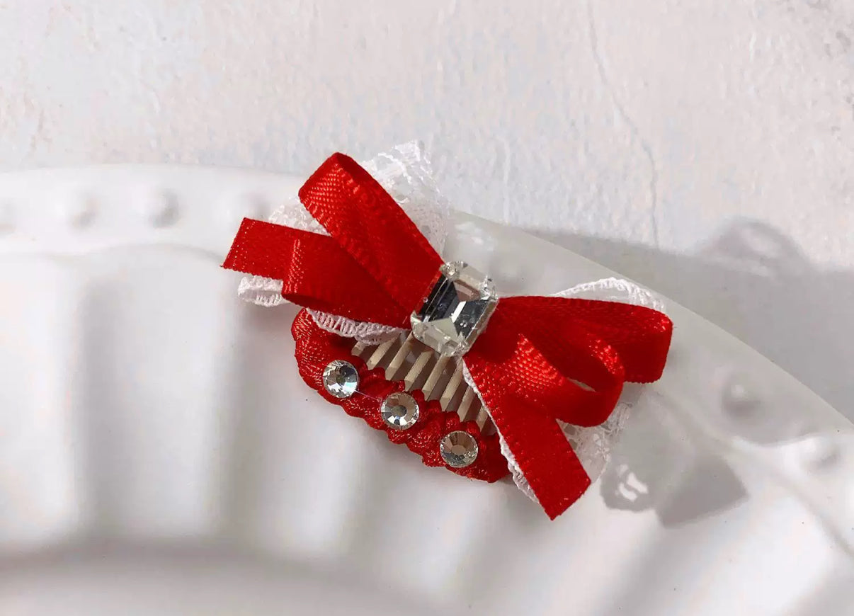 2.3cm Mini Hair Clip -Lace Bows Diamond