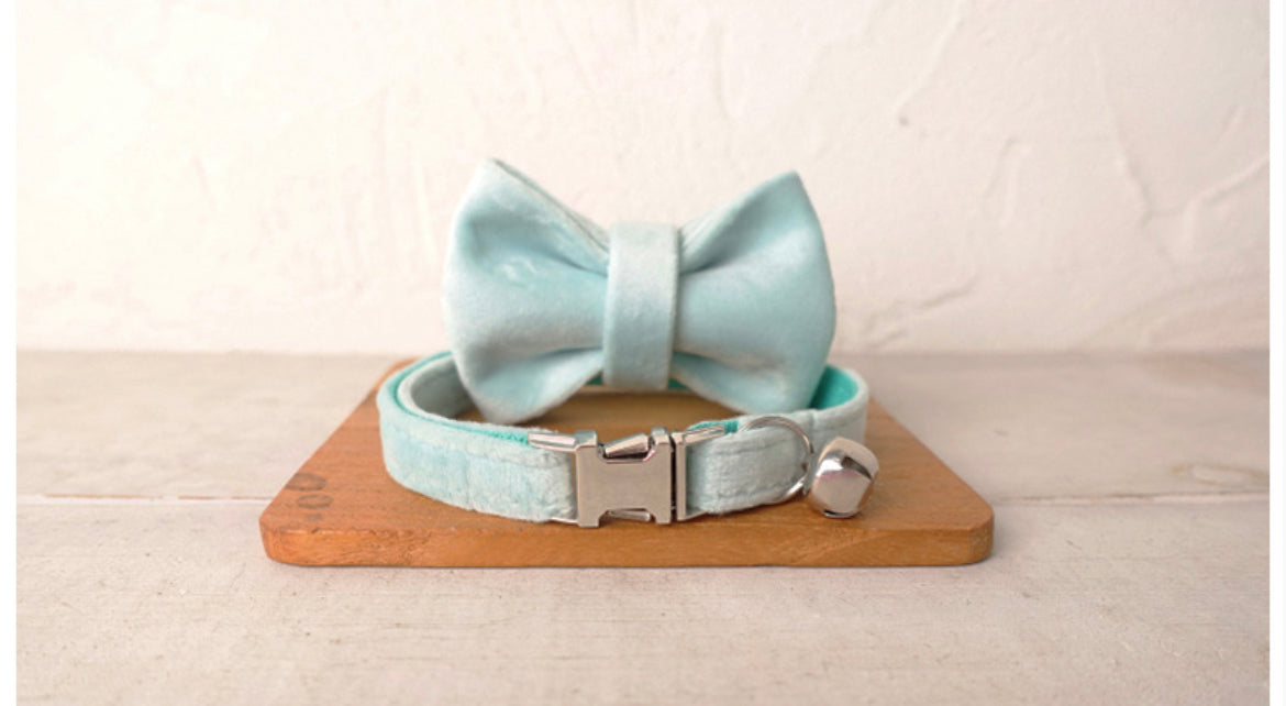 Aqua Velvet Cat/Puppy Collar Bowtie