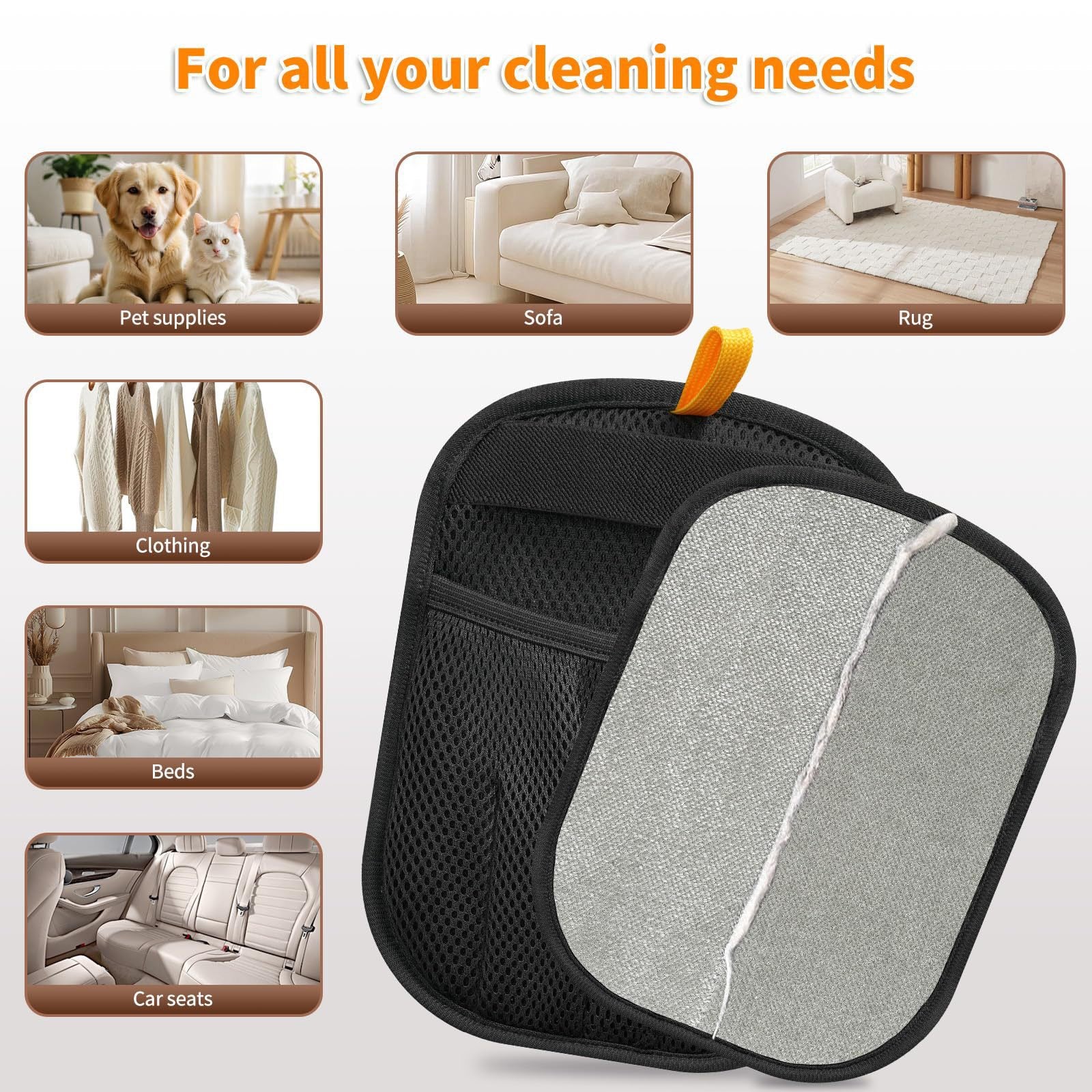 - 【Versatile for All Fabric Surfaces】 Designed to handle large surfaces with ease, these dog hair remover let you clean sofas, carpets, rugs, and more in record time. No more tedious rolling or spot-cleaning – just glide your hands and watch the magic happen.