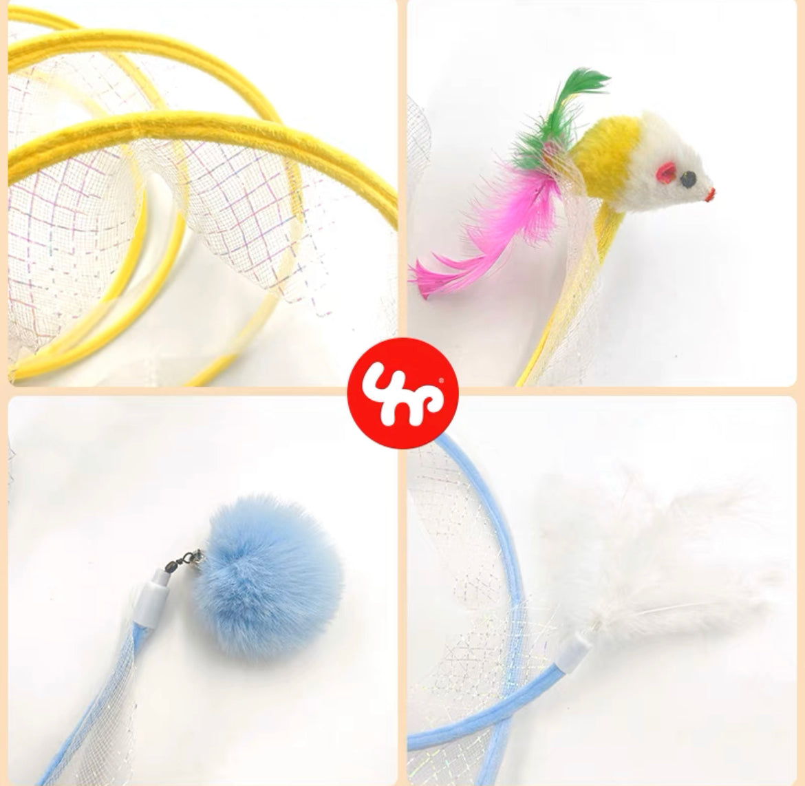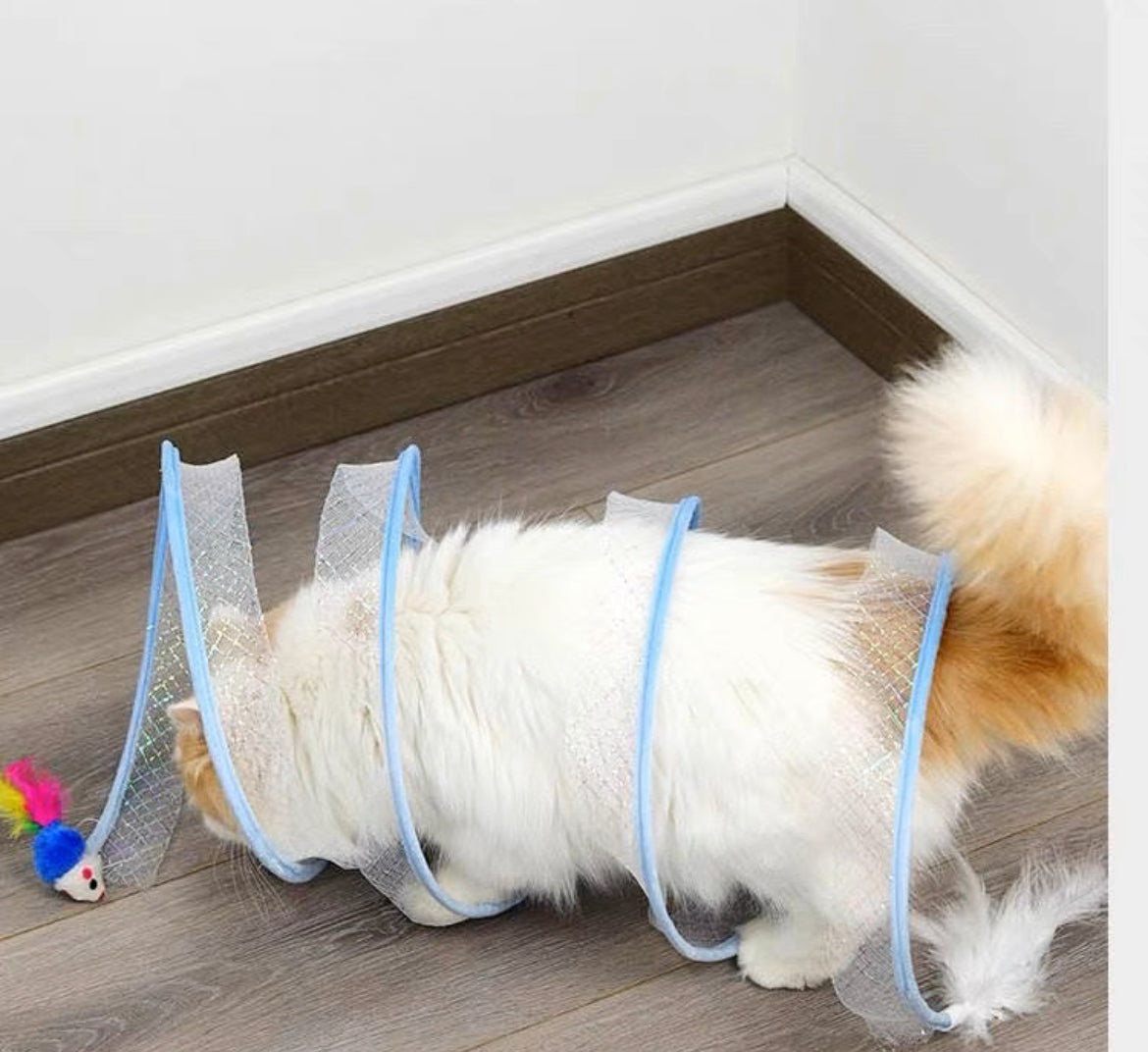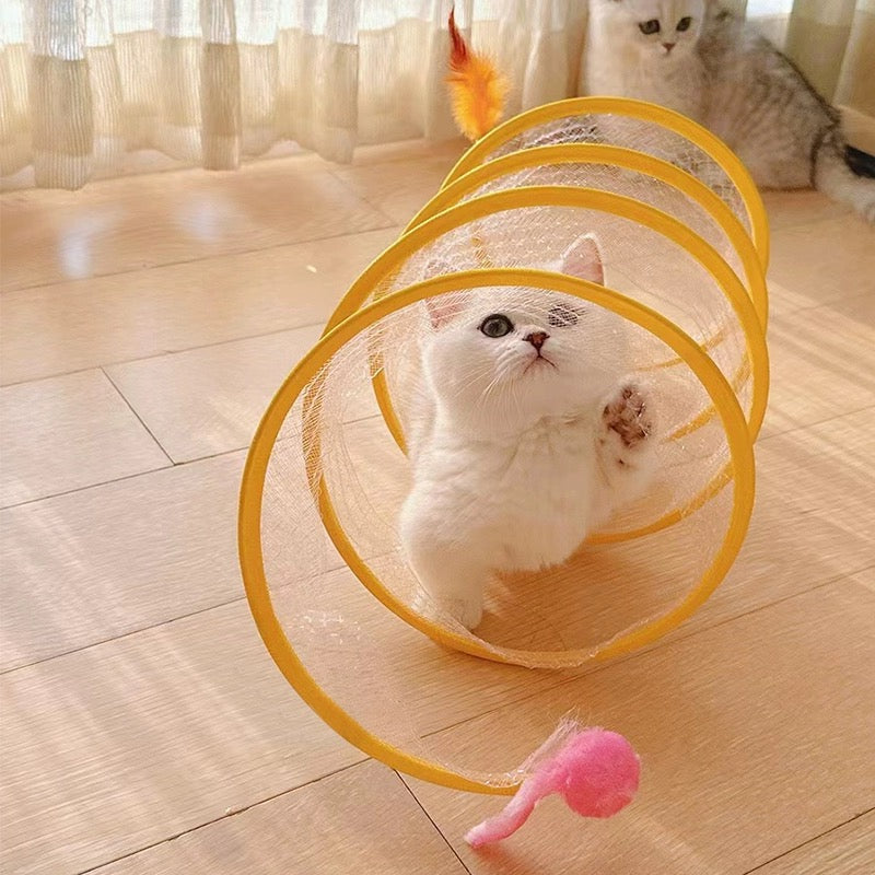 The cat tunnel ring toy comes equipped with a built-in dangling pom pom and a feather mouse, adding an extra element of excitement to your cat's playtime. This feature encourages play, exercise, and mental stimulation, which are crucial for your cat's overall well-being.