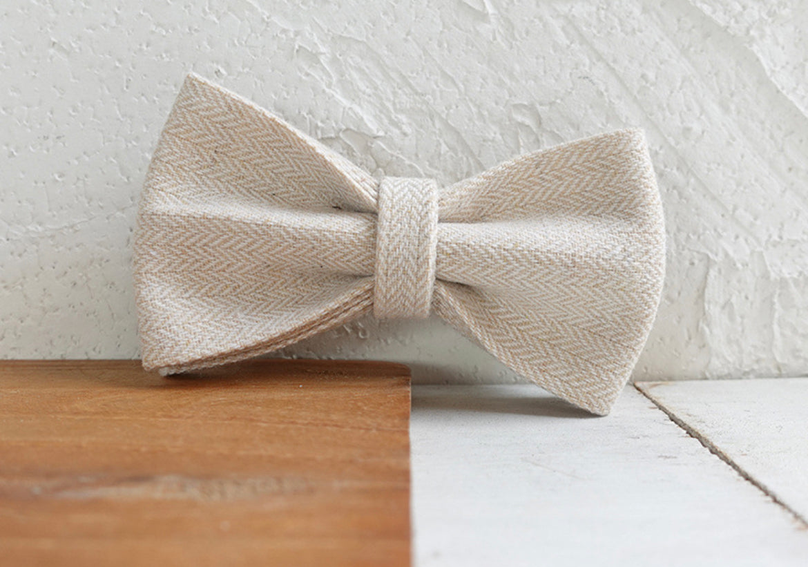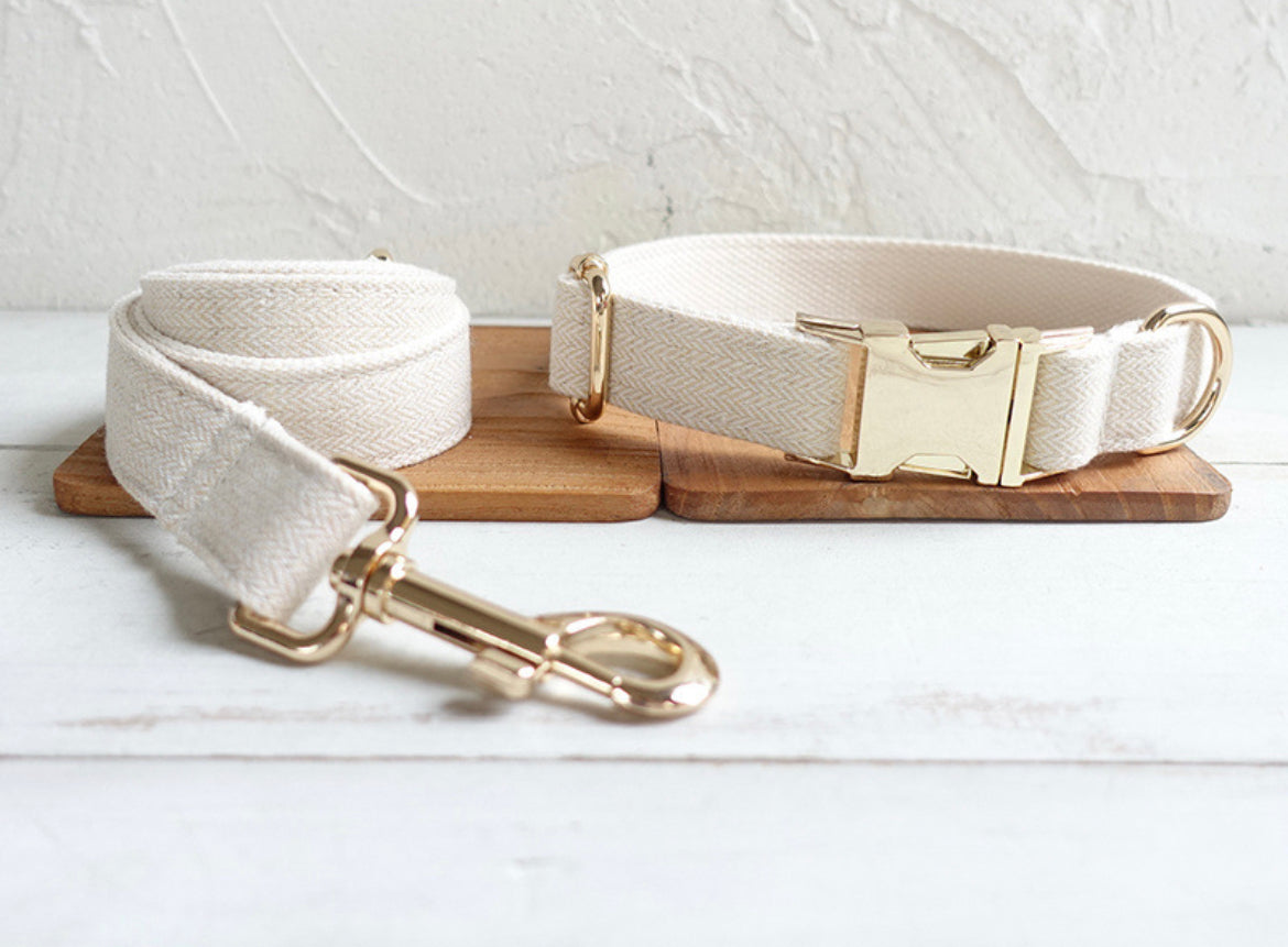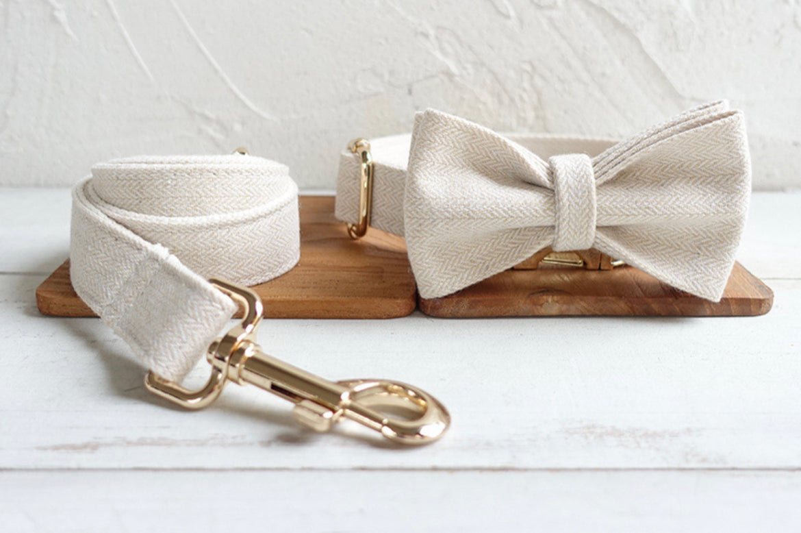 Cream Wool Collar Leash Bowtie