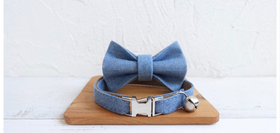 Denim Cat/Puppy Collar Bowtie