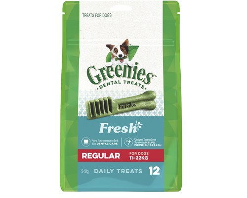 Greenies Freshmint contains dried spearmint which gives a natural flavour and supports your dog with surprisingly minty breath. If you haven't given your dog Greenies before, try replacing your rawhide treats and hard biscuits with them - many satisfied customers of Greenies' products say that it was a change for the better. Plus, if you're on the receiving end of some bad doggy breath then you definitely ought to give Greenies a go.