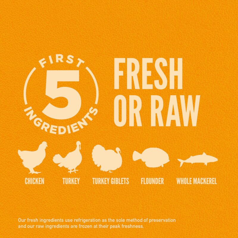 - FRESH MEAT INCLUSIONS Unrivalled by any other pet food, TWO-THIRDS of the meats in ORIJEN are FRESH or RAW to provide essential nutrients in their most nourishing form and the goodness all cats and dogs instinctively crave.