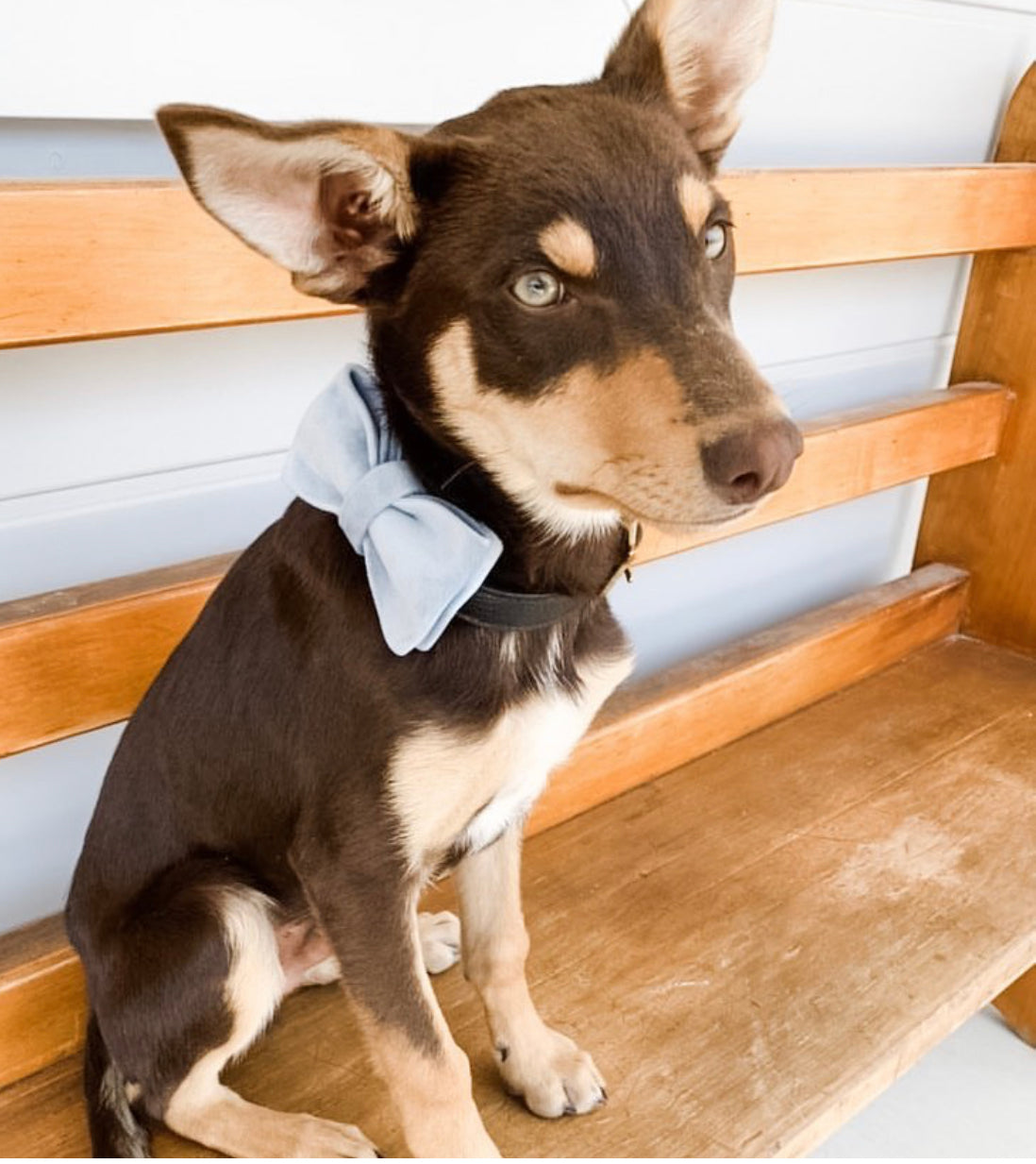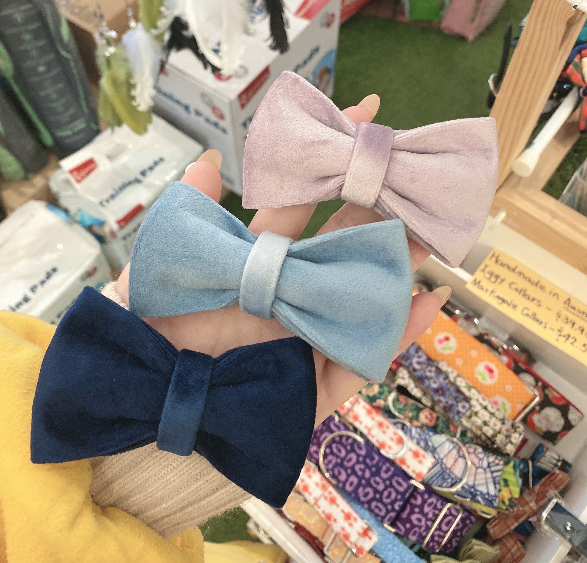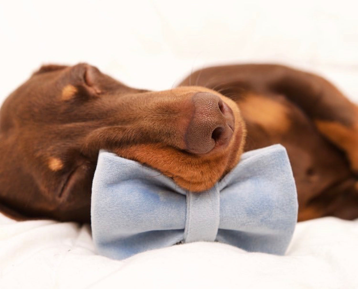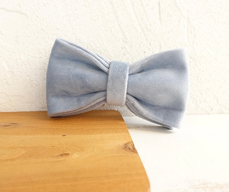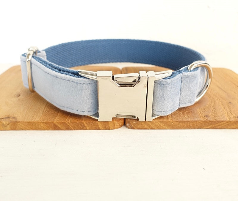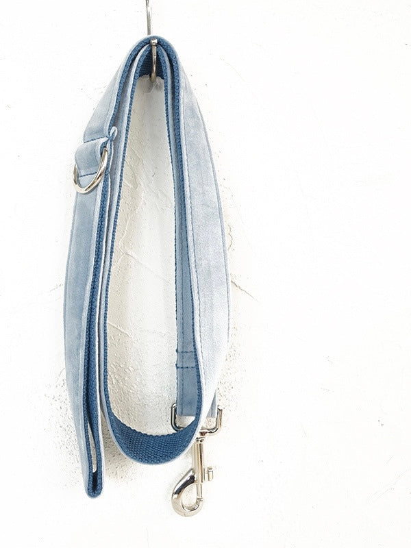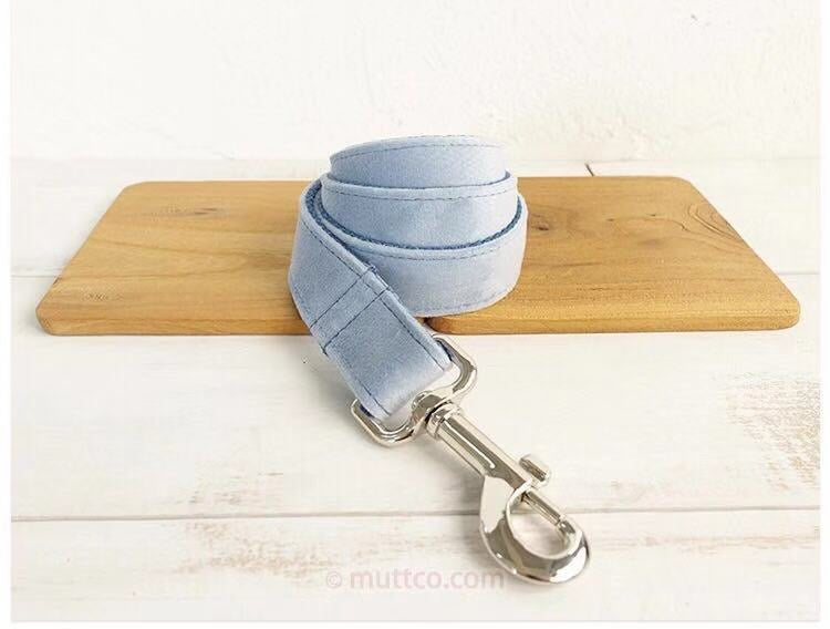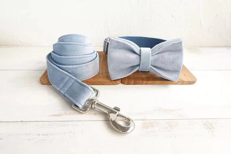 Sky Blue Velour Collar Leash Bowtie
