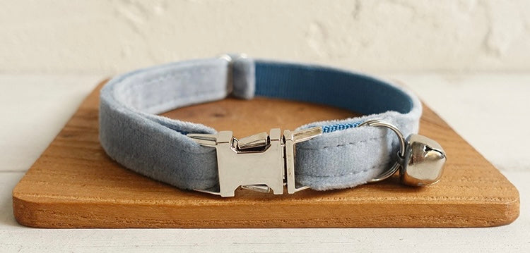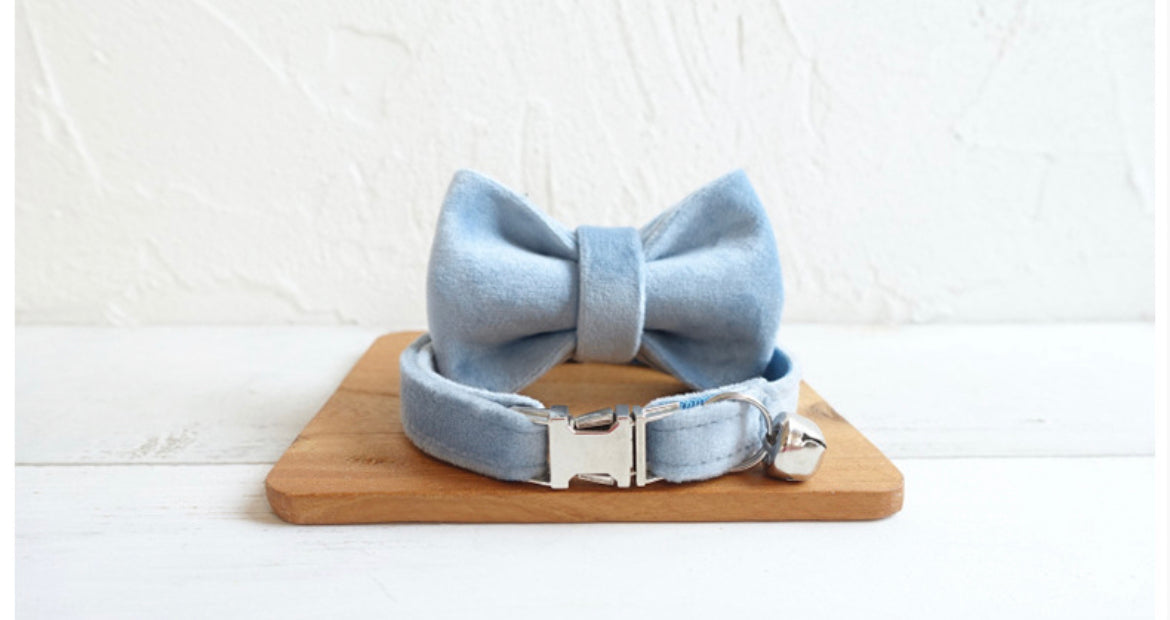 Sky Blue Velvet Cat/Puppy Collar Bowtie