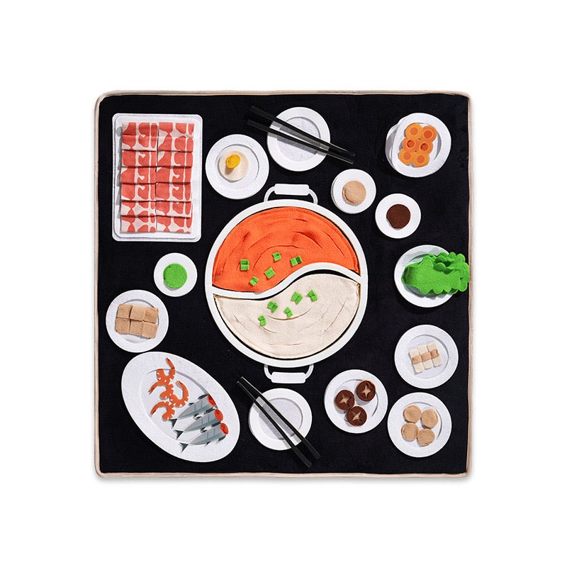 Convenience is key with this toy, as it is machine washable, making clean-up a breeze after your pet's playtime adventures. Overall, the brunch-themed sniffing mat combines play, mental stimulation, and treat discovery into one engaging and washable toy that your furry friend will adore.