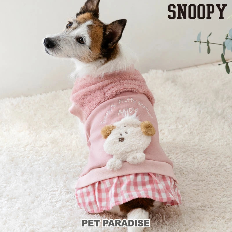 Snoopy Andy Dog Clothes Spring Side Open Sweatshirt Easy to Wear Small Dog Pink | Autumn/Winter Harness Lead Hole Layered Look Going Out Walking Stylish Cute Girl