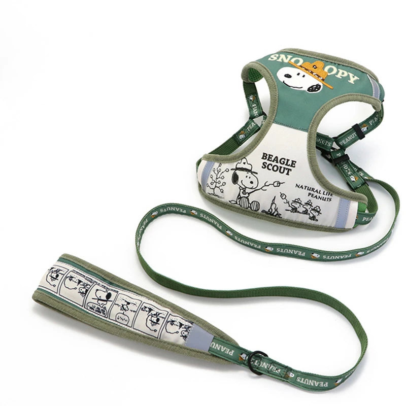 Snoopy Dog Harness Lead Harness & Lead | Cute Dog Harness Beagle Scout 50th Anniversary Reflective Mesh Lining Green Night Walks One Piece Stylish