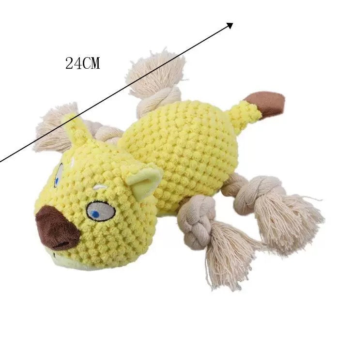 【Teeth Clean & Keep Health】: When rope knots , crinkle paper and squeaker attract your dogs to bite the chew toy.The concave-convex design on the surface and the hemp rope feets clean your dogs teeth and reduce their aggressiveness.