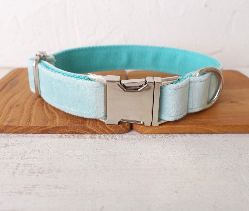 Teal Velour Collar Leash Bowtie