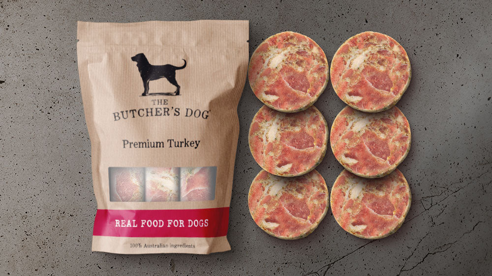 Turkey is an excellent source of protein and alternative for dogs who have sensitivities to chicken. A delicious meal containing chunky Australian turkey meat with crushed bone and cartilage. Suitable for puppies, adult dogs those new to a raw diet.