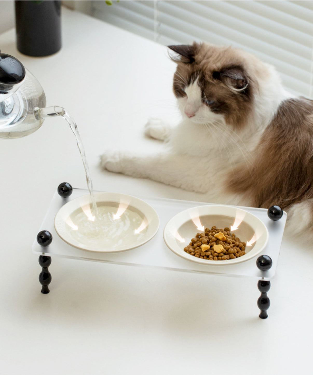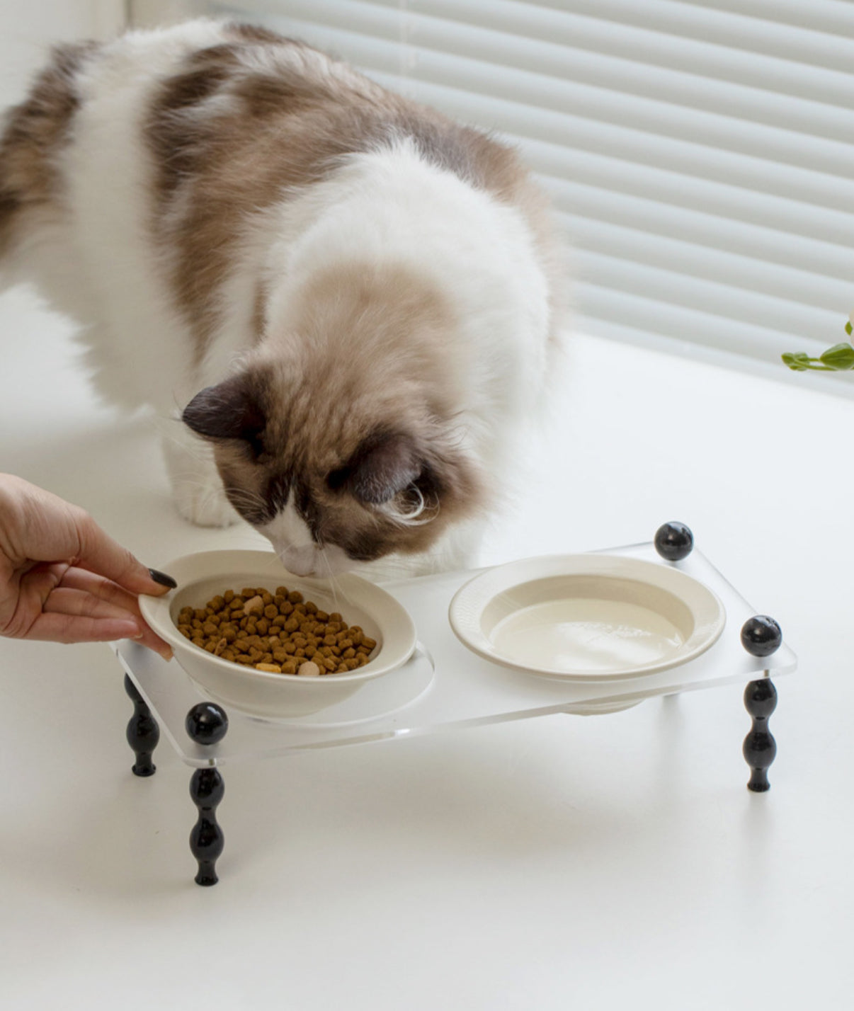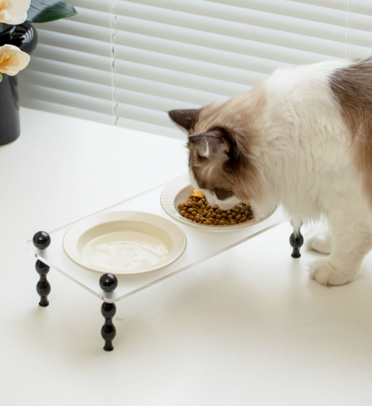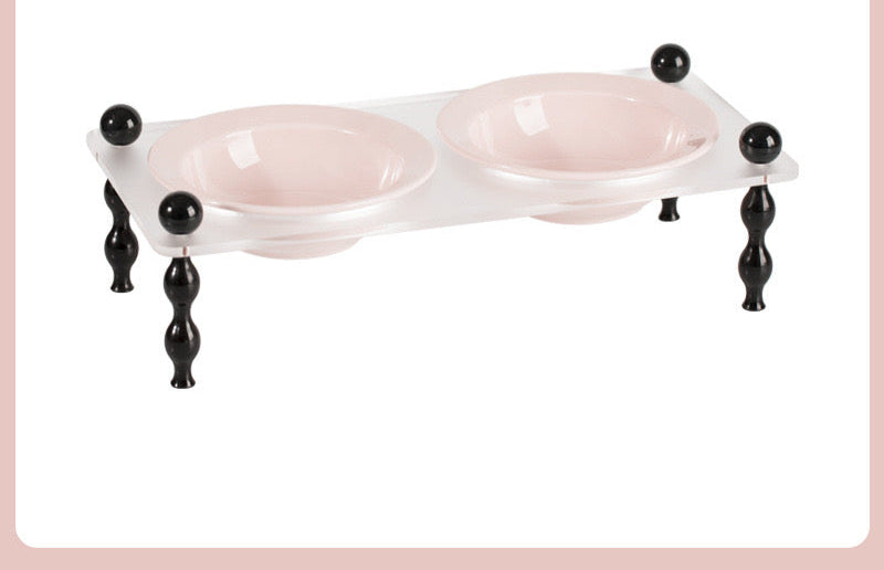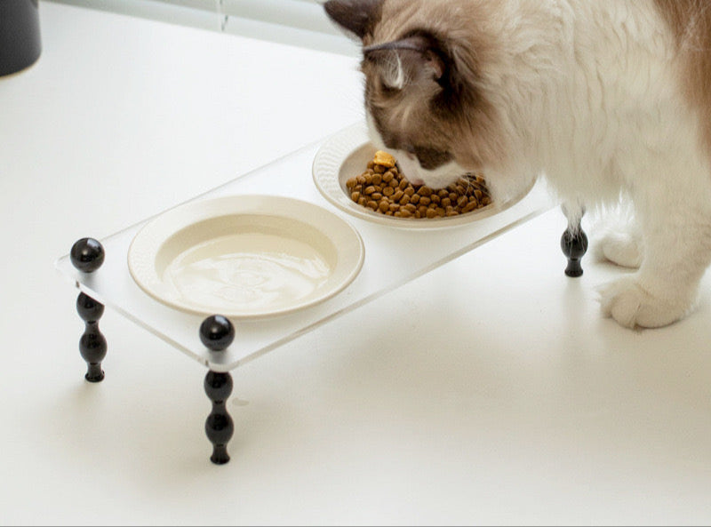 1. The design of the cat bowl takes into account the body characteristics of cats. The bowl is at a certain height from the ground, so cats do not need to lower their heads hard when eating, which conforms to the principles of cat body mechanics.