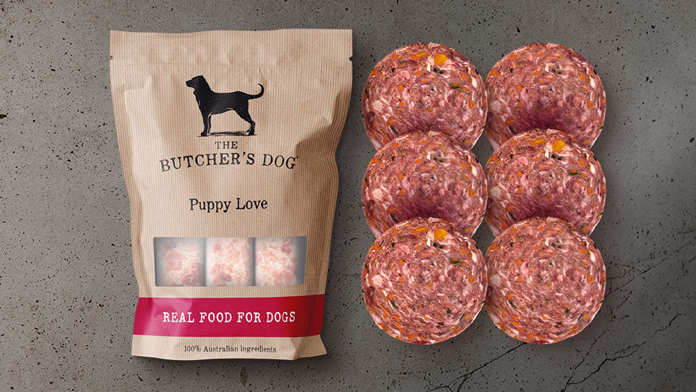 A complete and natural raw food for puppies. Just high quality 100% Australian grown meat and vegetables with no cheap filler ingredients or preservatives. It’s what puppies were born to eat.