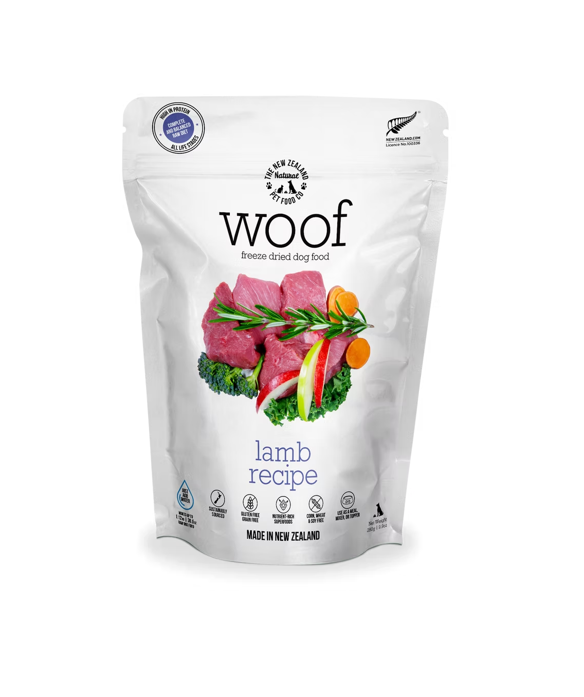 WOOF 仅使用最优质的成分制成,旨在滋养宠物的健康。结合新鲜、生食的营养和味道,并通过温和的冷冻干燥过程,保护所有天然酶和营养素,因此没有任何健康的好处被煮熟。